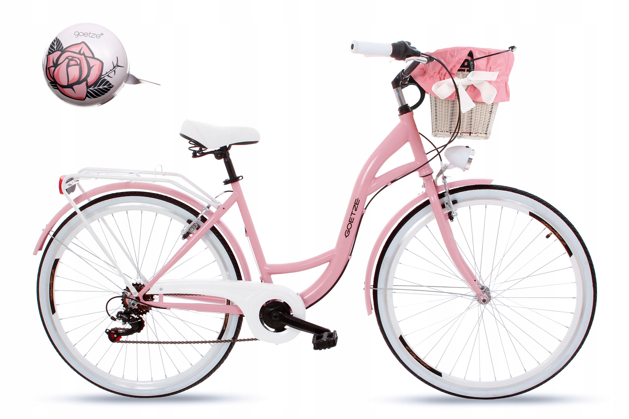 UWAGA: w tej ofercie do zakupionego roweru poza wiklinowym koszem z wkładem otrzymasz duży stylowy dzwonek Goetze o średnicy 80mm, świetnie pasujący do charakteru roweru.